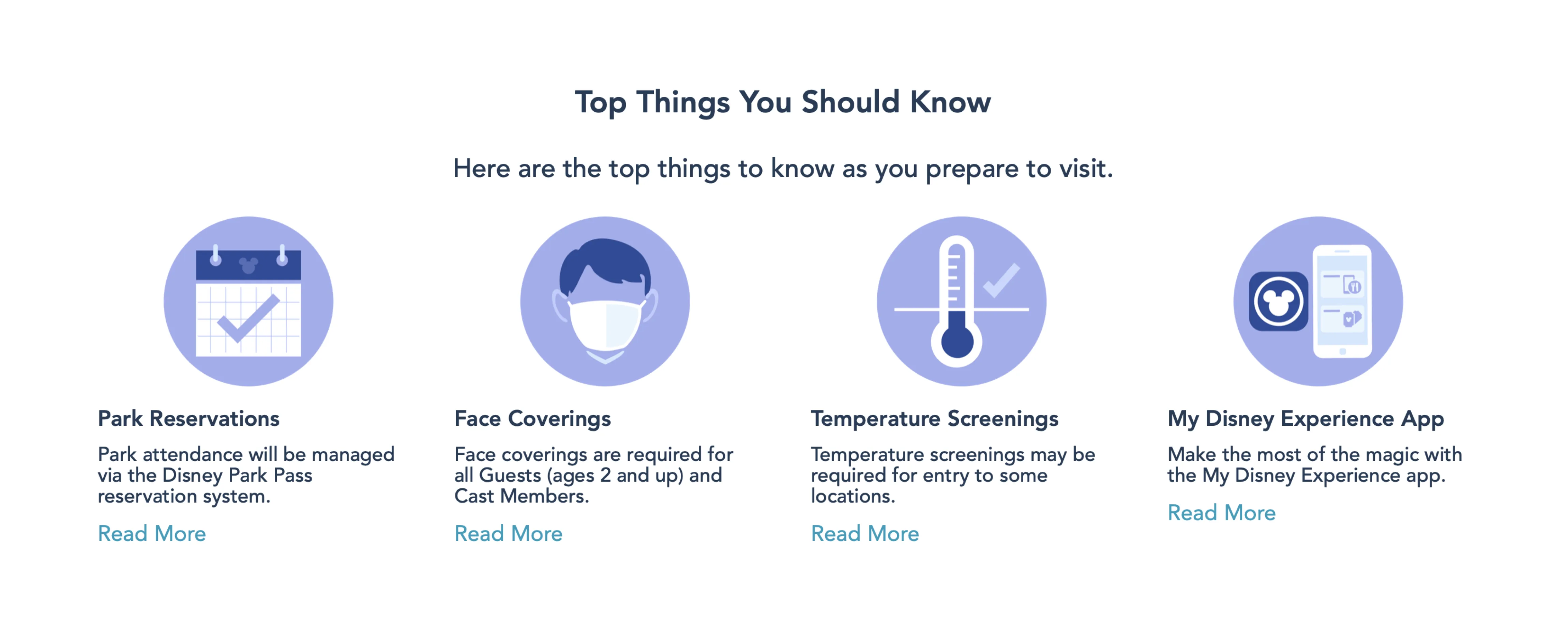 Disney presents key information visually, rather than forcing users to read through large blocks of text or bullet points