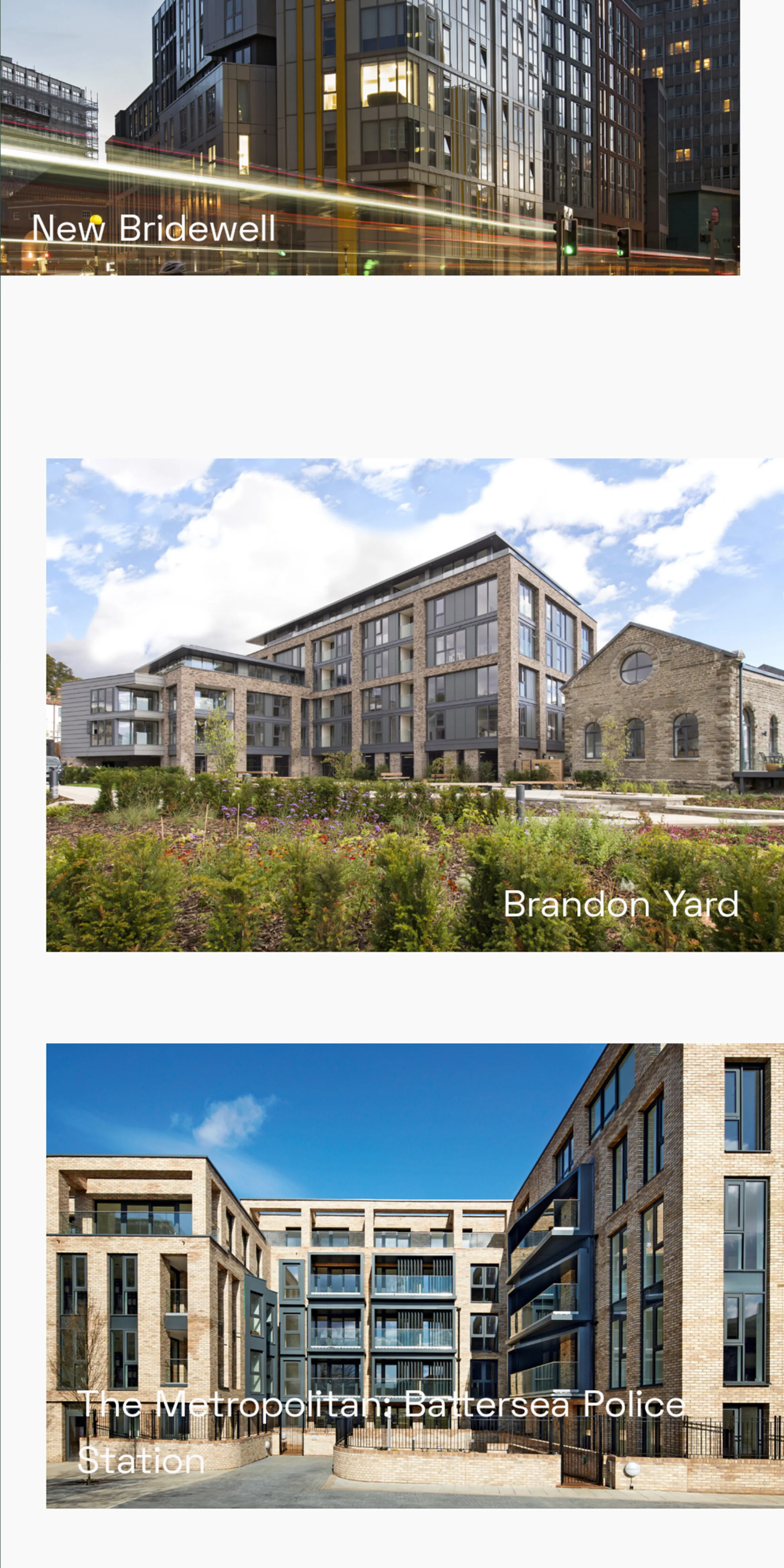 AWW sees its work in two phases: the new, design-led exemplar projects, and the historical portfolio that evidences decades of experience. Initially the brief was to remove the historical work in favour of a big hit of new, detailed, highly polished case studies. We dutifully responded to this, but ultimately the directors found that losing the historical portfolio would damage a strong aspect of their offering: stability and long-term success.